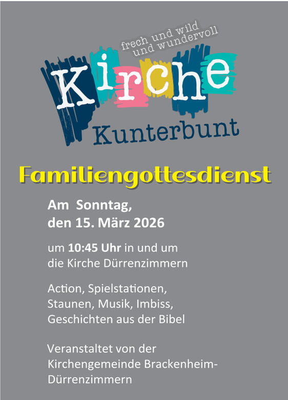 Gestartet wird um 10:45Uhr in der Maria – Magdalena Kirche in Dürrenzimmern. Wir feiern den Gottesdienst mit fetzigen Liedern, einem spannenden Impuls und mit Spielstationen in und um die Kirche.